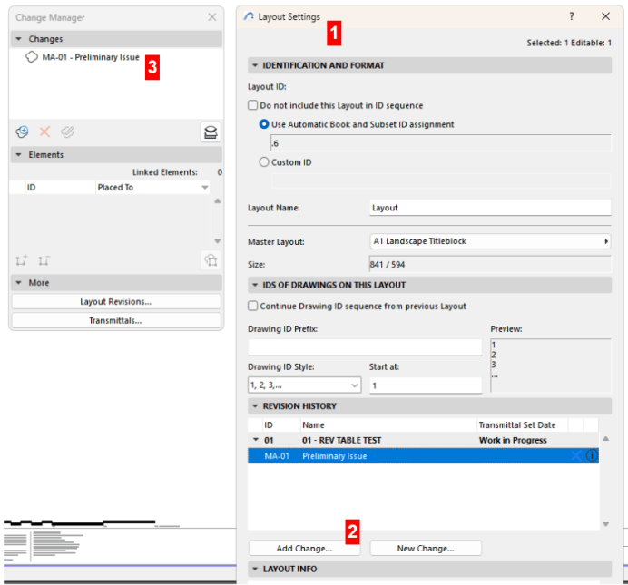 In the layout settings, it is possible to add a change without having to draw a revision cloud.