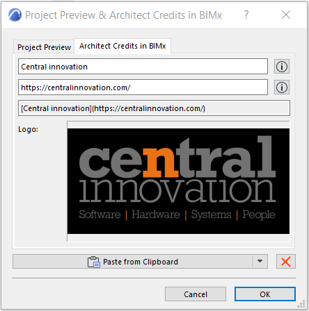 In your BIMx project, is it possible to add a preview image and/or the architect’s credits like the logo, like this your project in this format will carry them in during the presentation.