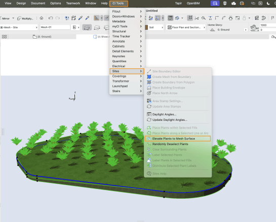 Ci Tools > Sites > Elevate to mesh Surface