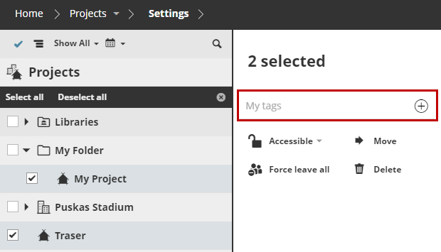 Categorize and locate your Projects, Libraries and Folders on BIMcloud using Tags.