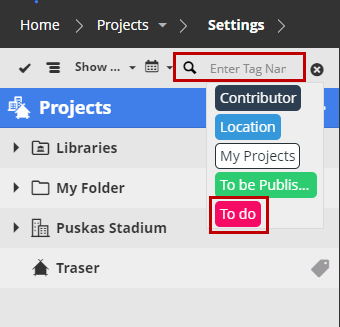 Tags will now appear in the Search Bar of the projects page to filter tagged Projects, Folders or Libraries for quick navigation.