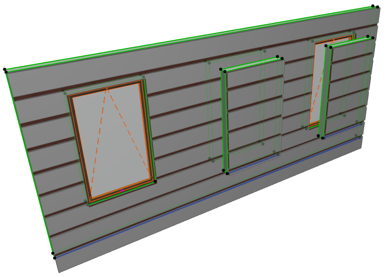 Since Wall Claddings can’t automatically handle ‘To Be Demolished’ openings, create new wall elements to match the openings and apply the correct Renovation Status, being: