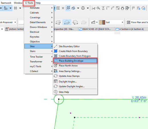 Height in Relation to Boundary Checks (HIRB) can be carried out with the help of this Building Envelope feature, where a Site mesh has been developed using the Ci Tools Boundary object.