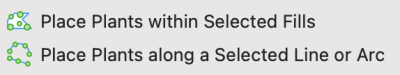 Simply select the path element (Fill, Line, Polyline or Arc) and select Ci Tools > Sites > Place Plants within Selected Fills OR Place Plants along a Selected Line or Arc