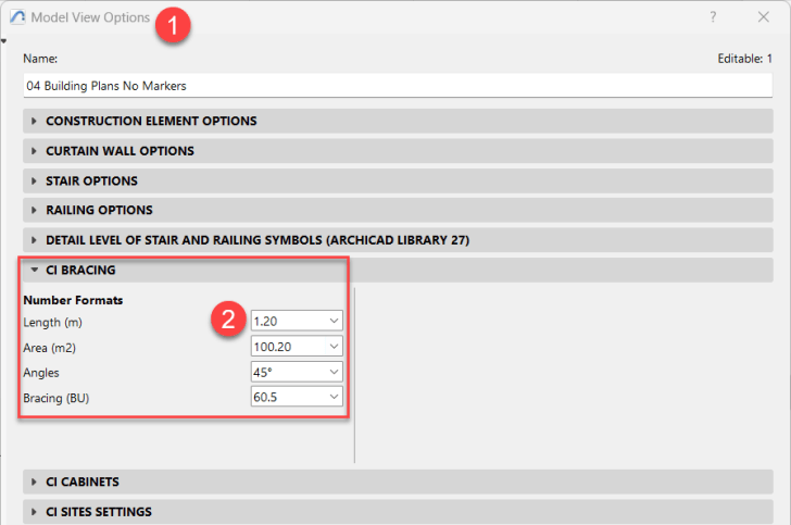 It is possible to edit or display the Bracing Length format or any other units by the Model View Options settings.
