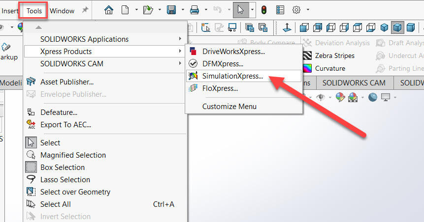 Under Tools–>Xpress Products, Select SimulationXpress. It will launch the “Enable SimulationXpress” window.