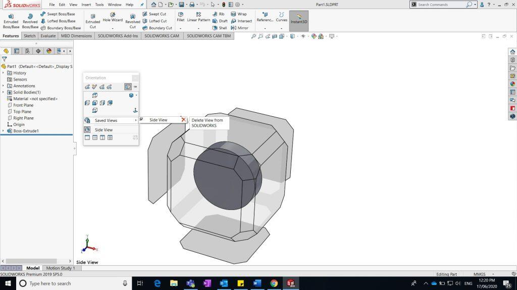 To delete the created view, click Delete view from SolidWorks option.