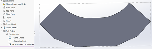 The resulting Flat Pattern looks like what you see below, note there are no Bend Lines like in the Bent Lofted Bends example.