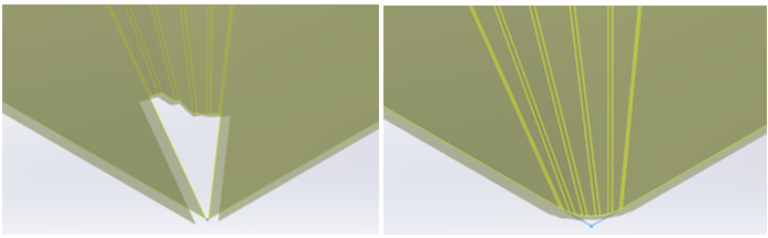 Profile cannot include sharp corners.