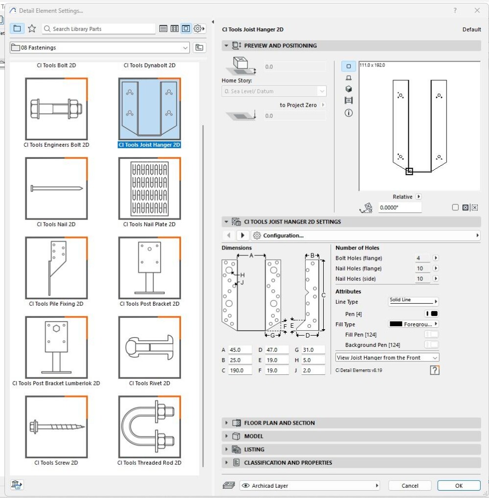 Did you know the Detail Element Tool from Ci Tools is ideal for 2D annotations, especially in Sections and Details? It offers a range of parametric, ready-to-use elements, simplifying detailing tasks like fastenings or timber members. While we aim to model as much as efficiently possible, precise 2D detailing is sometimes essential.