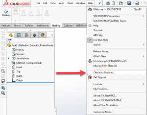 Alternatively you can also get to the “check for updates” within the SolidWorks program.