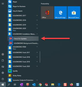 1. If you already have SolidWorks installed on your machine you can use the “check for updates” option. This will be an available program under the SolidWorks installation manager folder.