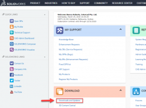 After logging into the SolidWorks customer portal go to “download and updates”.