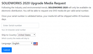Beginning with SolidWorks 2020, SolidWorks stopped distributing DVD media. It will now only be provided on request.