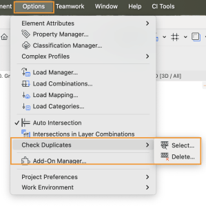In Archicad, it's possible to quickly identify and remove duplicate elements using the Check for Duplicates command, keeping your project clean and well organised.