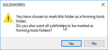 This option needs to be checked off so that SolidWorks knows any file under that folder is supposed to be used as a forming tool. Instead of carrying out this process on all your folders one by one, you can right-click on the top folder called “forming tools” and check off that option. Then it will allow you to select all sub-folders as well.
