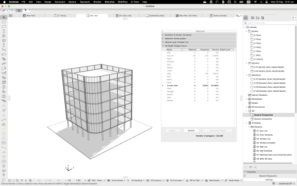 Model View Options allow to lower the level of detail for elements controlled by it, such as Curtain Walls, Stairs, Railings and Objects. So by creating a specific view to work on, you will be able to handle your projects better. As shown in the below images, the amount of Polygons in this model has been drop more than 90% just by using this feature.