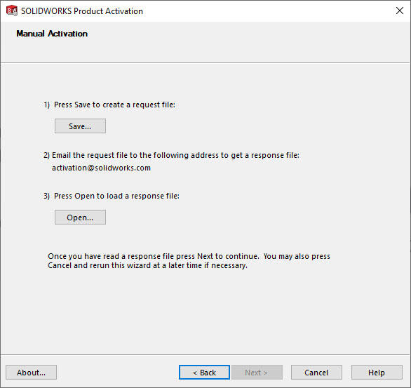After selecting Next the SolidWorks Product activation windows appears with the instructions to release the license