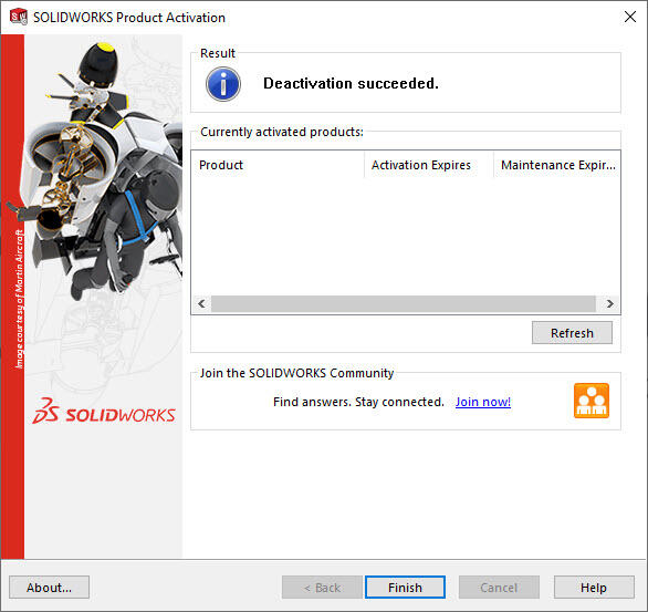 SolidWorks will connect to the activation database and release the license off your machine and notify you that the deactivation was successful.