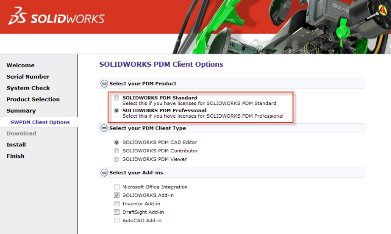 On the SolidWorks PDM Client Options page, select the following and click Back to Summary: