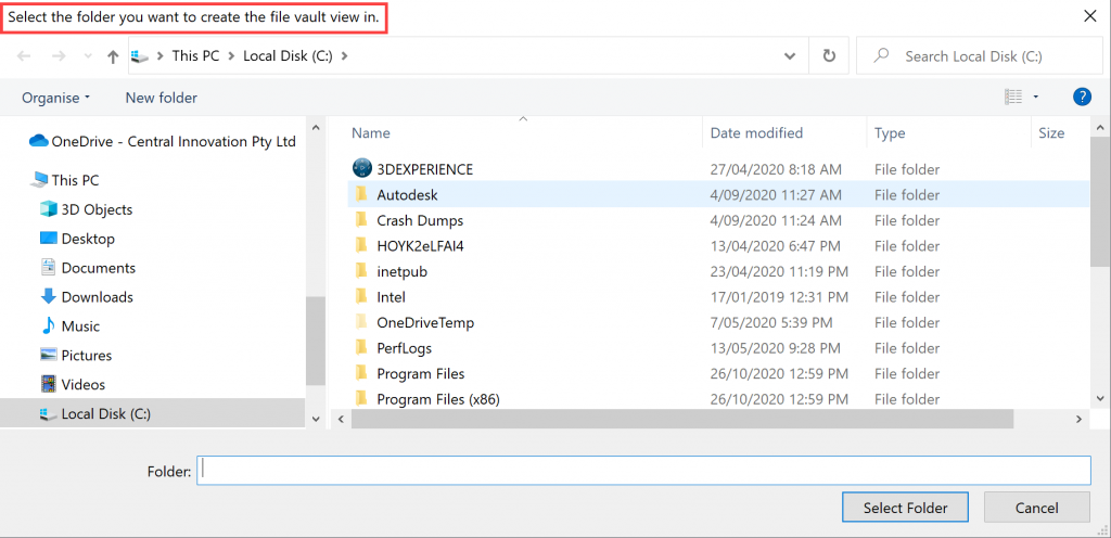 The first step will be to log into vault on the server, as a PDM Administrator. After logging in, specify the root location of the vault. To avoid exceeding the Windows path limit of 260 characters, place the vault at the root of a drive.