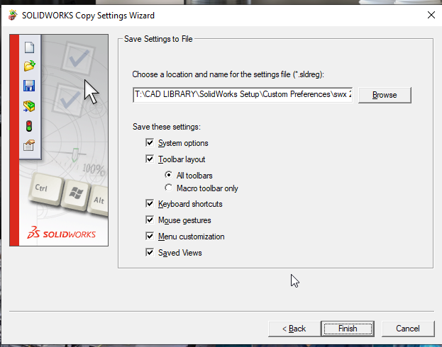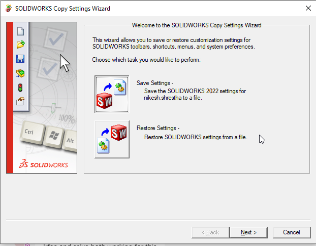 - If there was any corruption in the user settings of the SolidWorks registry, then it will copy that corruption to the settings files.