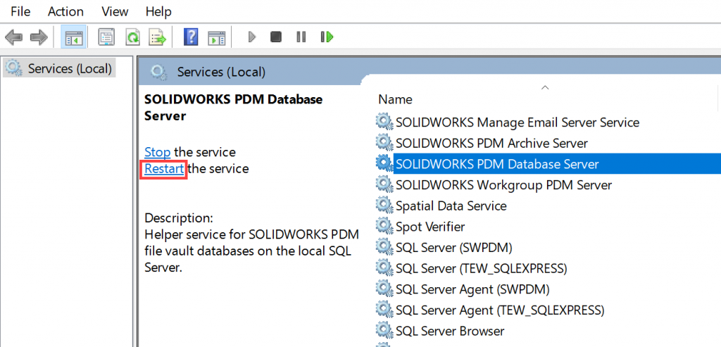 - Check SolidWorks PDM Database Server service (ConisioDbServer) is running or not.