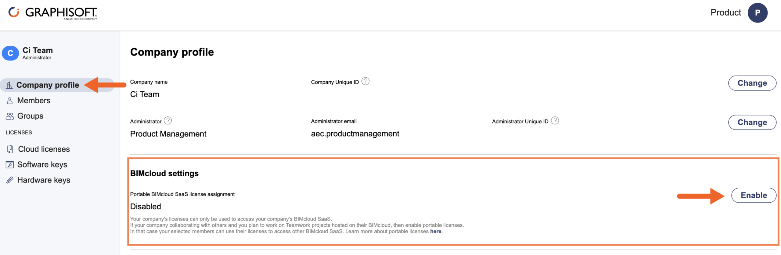 Archicad Collaborate supports cloud-based license portability, allowing users to join Teamwork projects hosted on a different organization’s BIMcloud SaaS environment.