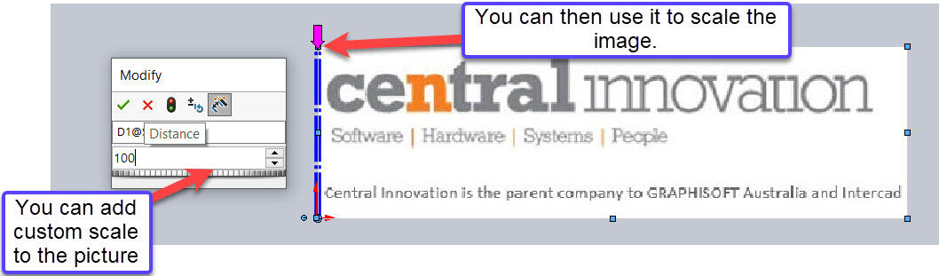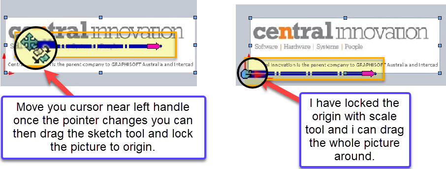 Sketch tool is a construction line with handles in each end and can be used to resize the picture. You can resize the picture in the graphics by dragging the end handles.