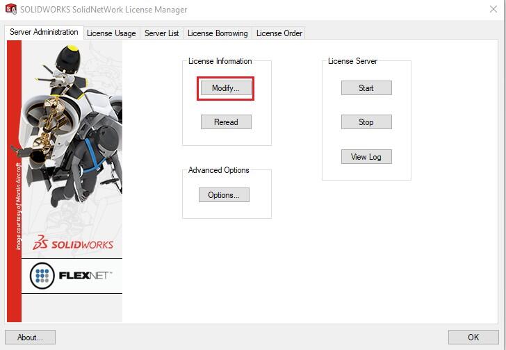 You will need access to the server computer. On the server computer open SolidWorks SolidNetWork License Manager