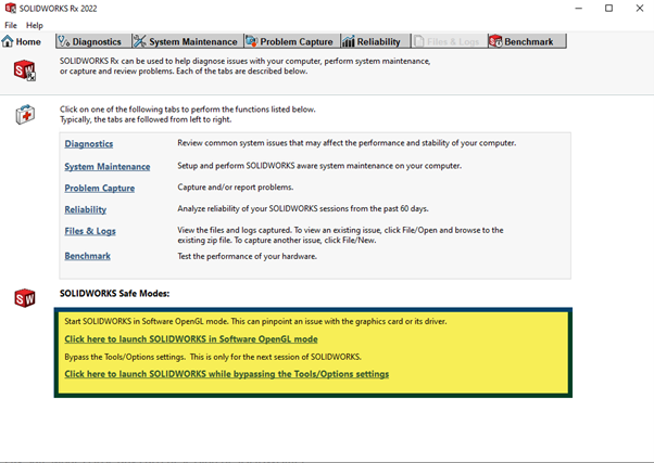 SolidWorks RX safe mode is one of the best tools that can be used to determine If your SolidWorks is not performing to its optimum level and SolidWorks is not Operating as intended and is crashing/hanging/lagging, you can use the RX tool to diagnose and narrow down what could be the root cause of the issue.
