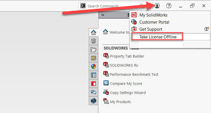 To take license offline, select the login icon at the top right corner, and select Take License Offline.