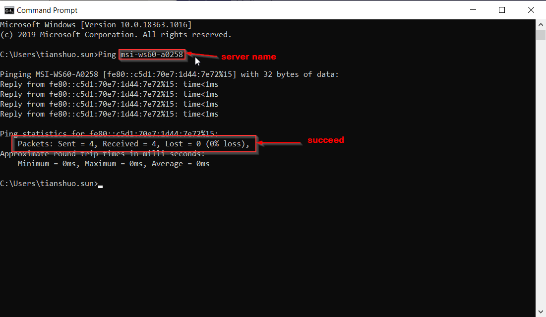 - Type ‘Ping server_name’ and press enter.