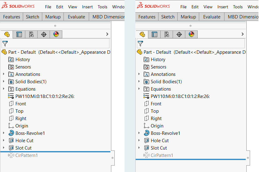 Also the version of the file that was rolled back above the circular pattern in the feature tree was not as small a file size as the simplified configuration version. Having a simplified configuration is likely the best option, and allows you to load the part in a simplified state, which is especially beneficial when loading a large assembly.