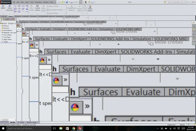 Is your SolidWorks session cascading in upon itself and leaving you dizzy, no longer sure which way is positive Z? Or, maybe the text in your feature tree has shrunk down to the point of being illegible. Most likely, you are suffering from mishandled DPI Scaling settings.