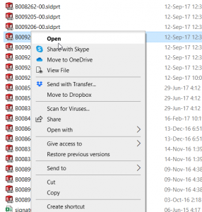 - As shown in the following figure, the default app for opening SolidWorks files are set to be SolidWorks 2019, and this will make the options missing in the File Explorer.