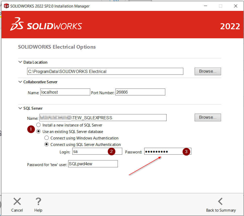- Password= SQLpwd4ew (if not changed during initial installation)