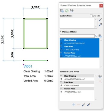 The Ci Tools Door & Window Tool includes the ‘Schedule Notes’ functionality, allowing users to create a database of notes to apply to Door and Window schedules.
